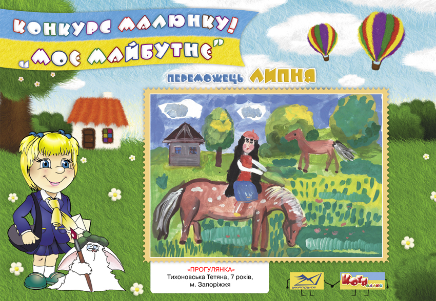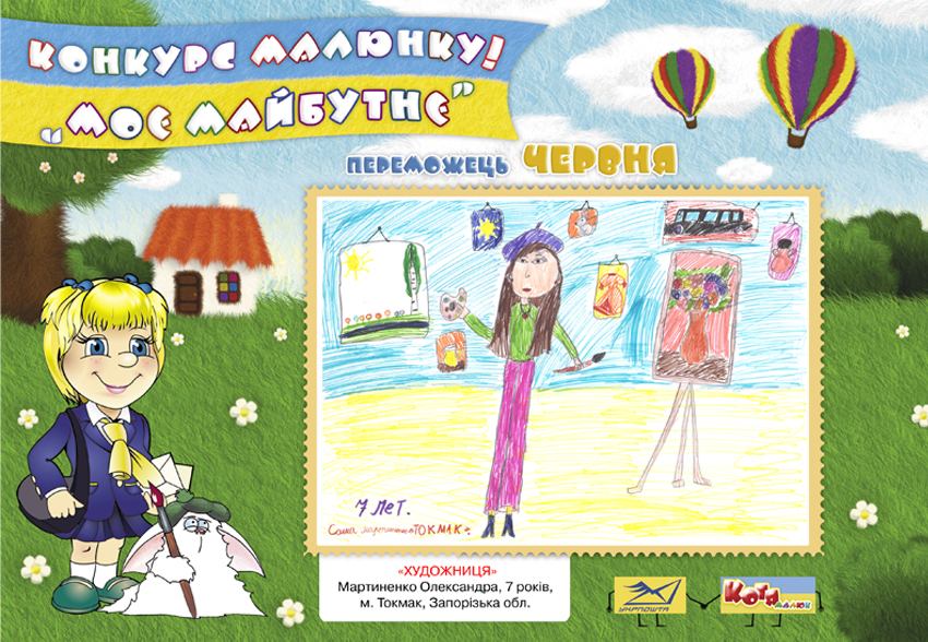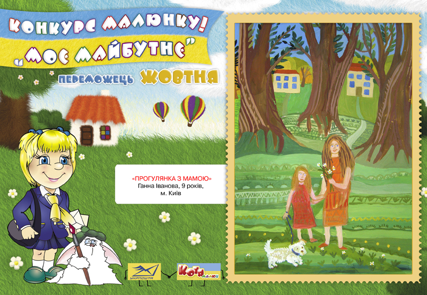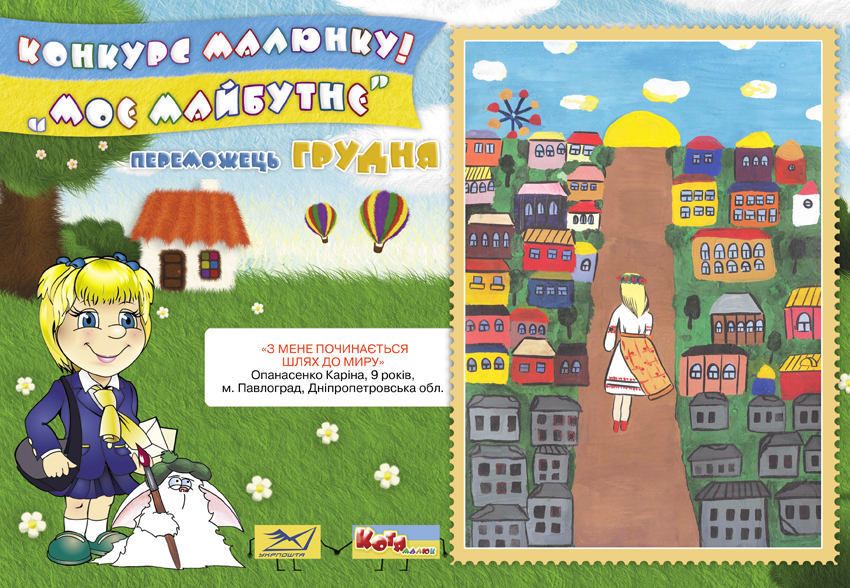 3 1 травня по 31 грудня 2016 року дитячий журнал «Малюк Котя» спільно з Українським державним підприємством поштового зв’язку «Укрпошта» проводитиме конкурс дитячого малюнка «Моє майбутнє».