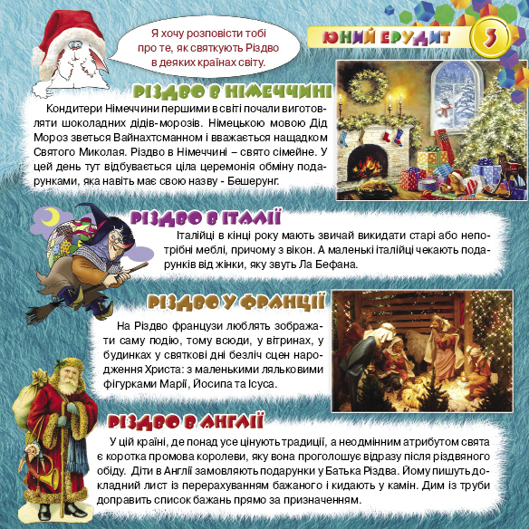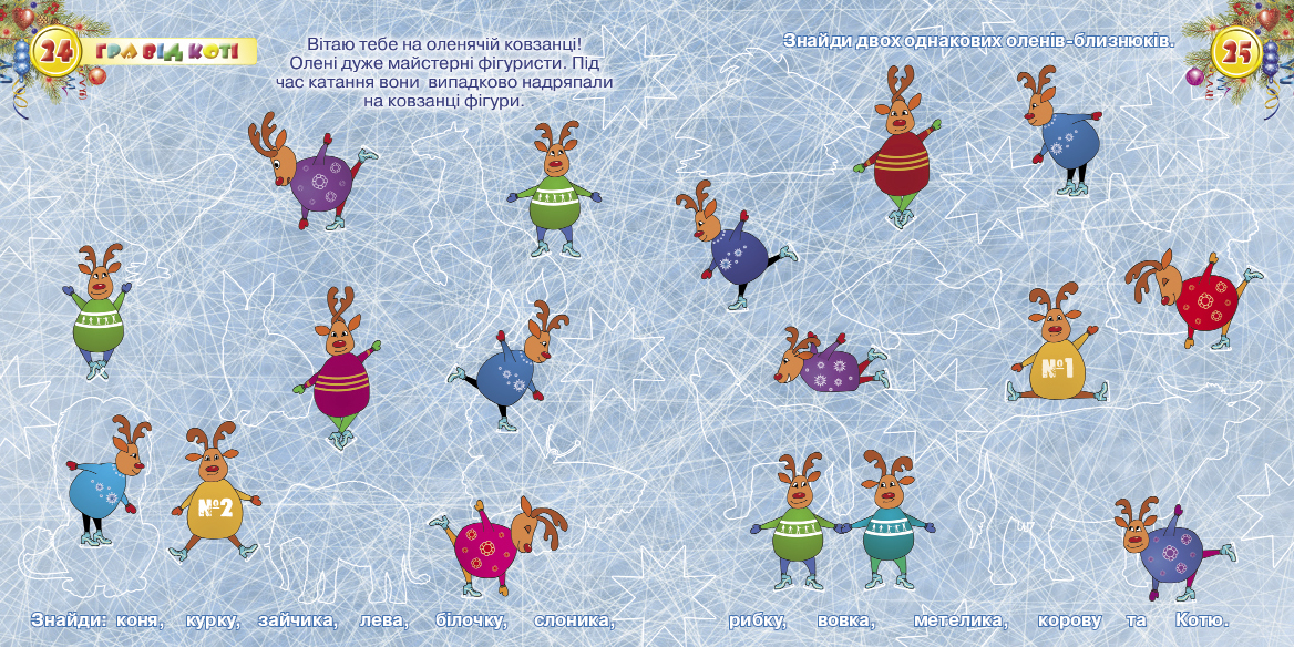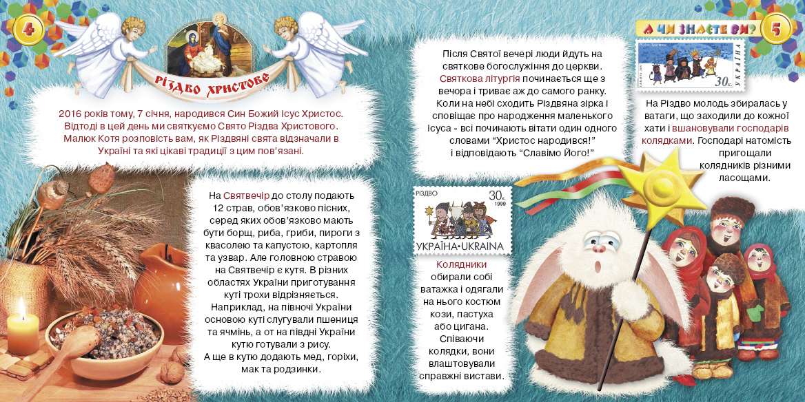 В цьому номері ти дізнаєшся багато нового, поринеш у світ Різдвяних свят, прикрасиш свою особисту ялинку, розгадаєш складний кросворд і врятуєш Свято, завітаєш до оленячої ковзанки, знайдеш багато цікавих ігор та вивчиш щедрівки! Я чекаю тебе на сторінках січневого номеру журналу " Котя малюк". Твій вірний друг, Котя!