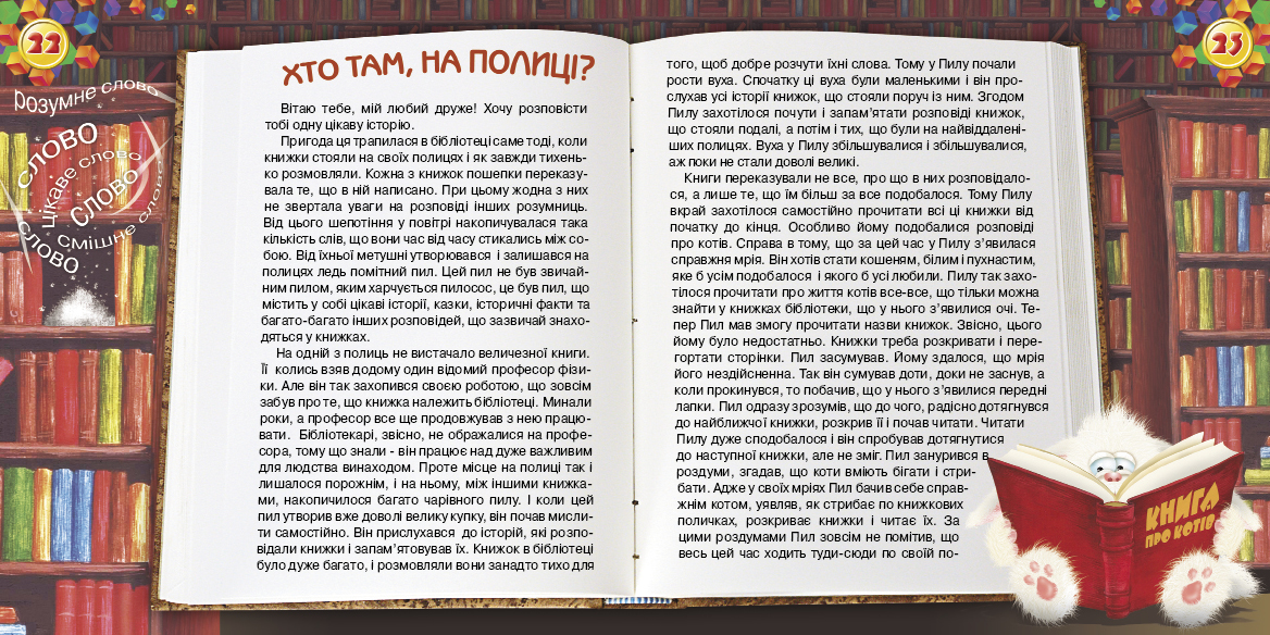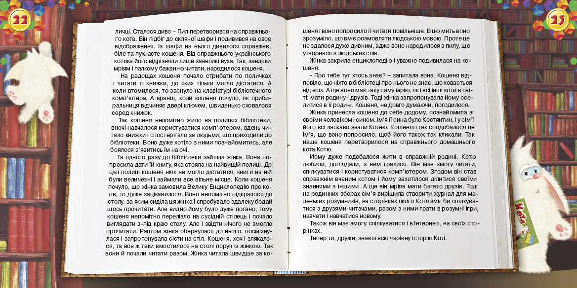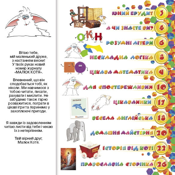 Зустрічай наступний номер журналу! В ньому ти поринеш  в світ книжок, зустрінеш багато захоплюючих ігор, зробиш для себе слоненя, вивчиш декілька нових англійських слів і прочитаєш чарівну історію. Чекатиму тебе на сторінках журналу! Твій вірний друг, Котя!
