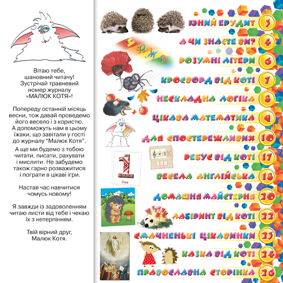 А допоможуть нам в цьому їжаки, що завітали у гості до журналу “Малюк Котя”.