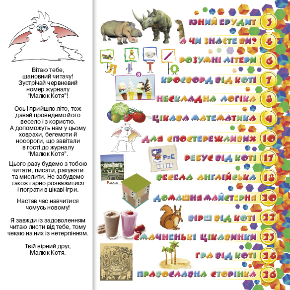 Ось і прийшло літо, тож давай проведемо його весело і з користю. А допоможуть нам у цьому ховрахи, бегемоти й носороги, що завітали в гості до журналу “Малюк Котя”.