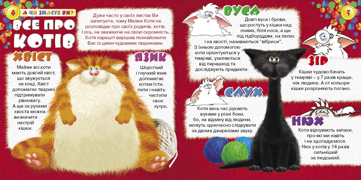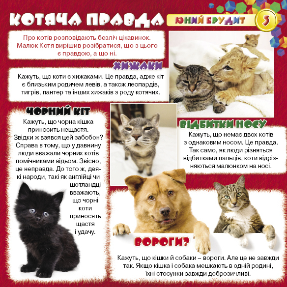 Я вирішив присвятити цей номер журналу своїм родичам - котам. Я розповім багато цікавого із життя цих домашніх улюбленців. А ще ми будемо з тобою читати, писати, рахувати та мислити. Не забудемо також гарно розважитися