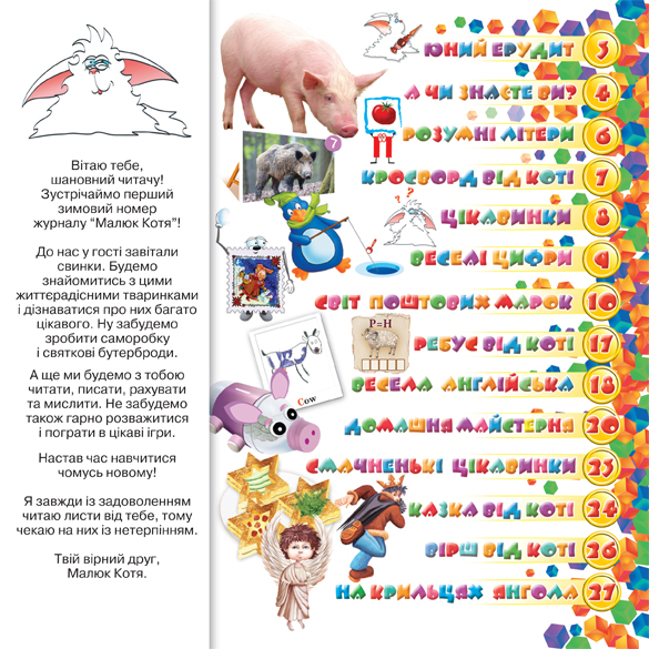 Вітаю тебе, шановний читачу! Зустрічаймо перший у цьому році номер журналу “Малюк Котя”!
