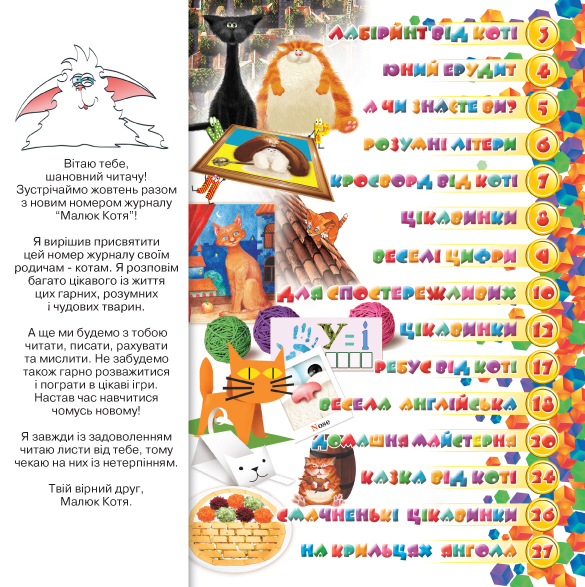 Цей номер журналу присвячений котам. Ти дізнаєшся багато цікавого із життя цих гарних, розумних і чудових тварин.