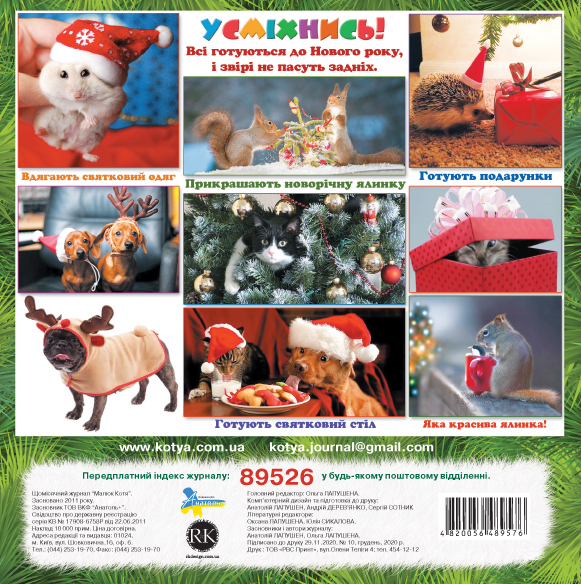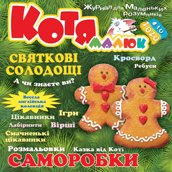 Ось і цей рік добіг кінця і на нас чекають новорічні свята! А яке ж свято без солодощів? А які солодощі нам до смаку? А що подобається нашим друзям чи рідним? Шукайте в цьому номері журналу розповіді про цікаві дослідження Малюка Коті про те, які солодощі існують у світі. І, звісно,блукайте лабіринтами, розв'язуйте ребуси, розфарбовуйте розмальовки, робіть саморобки. Не забудьте і про ВЕСЕЛУ АНГЛІЙСЬКУ КОЛЕКЦІЮ карток!