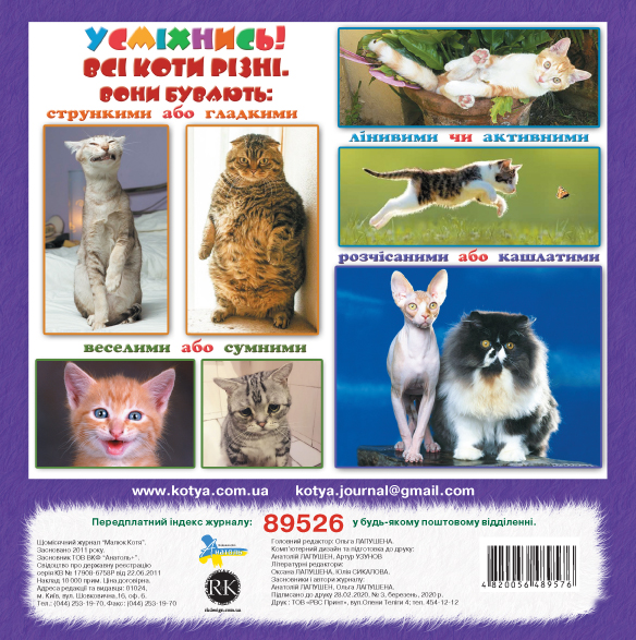 Цей номер журналу присвячений котам. Ти дізнаєшся багато цікавого із життя цих гарних, розумних і чудових тварин.