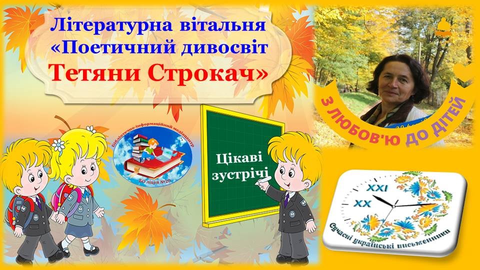 Під час проведення Всеукраїнського місячника шкільних бібліотек, який проходить під гаслом «Краєзнавство у шкільній бібліотеці: традиції та цінності» до бібліотечного медіацентру завітала білоцерківська талановита дитяча поетеса Тетяна Строкач. Цікавою, пізнавальною та захоплюючою була подорож читайликів 3-А класу (кл. керівник Куницька Н.М.) по сторінках книг-схованок Тетяни Строкач «Хто схова...