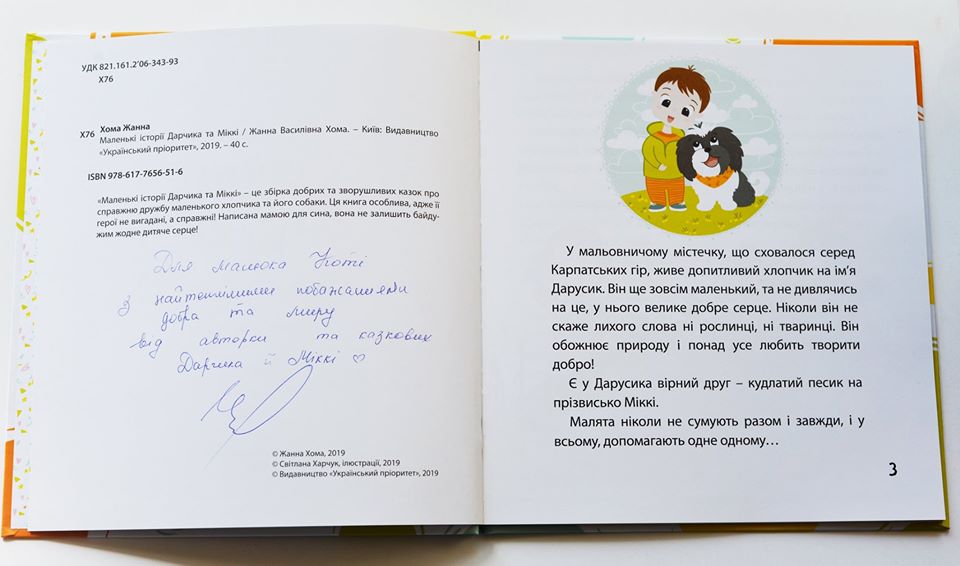 Подивіться, який я отримав чарівний подарунок від моїх друзів: письменниці Жанни Хоми і казкових - справжніх героїв її казок - Дарчика і Міккі! Ще й з підписом ! ♥