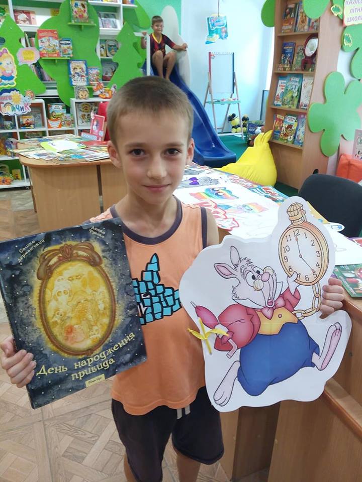 18.09.2018"Малюк Котя" і програма літнього читання "Алісова літня школа" 2018 у бібліотеці для дітей 8 міста Миколаєва для читачів, учнів 1-х - 4-х класів шкіл Корабельного району.