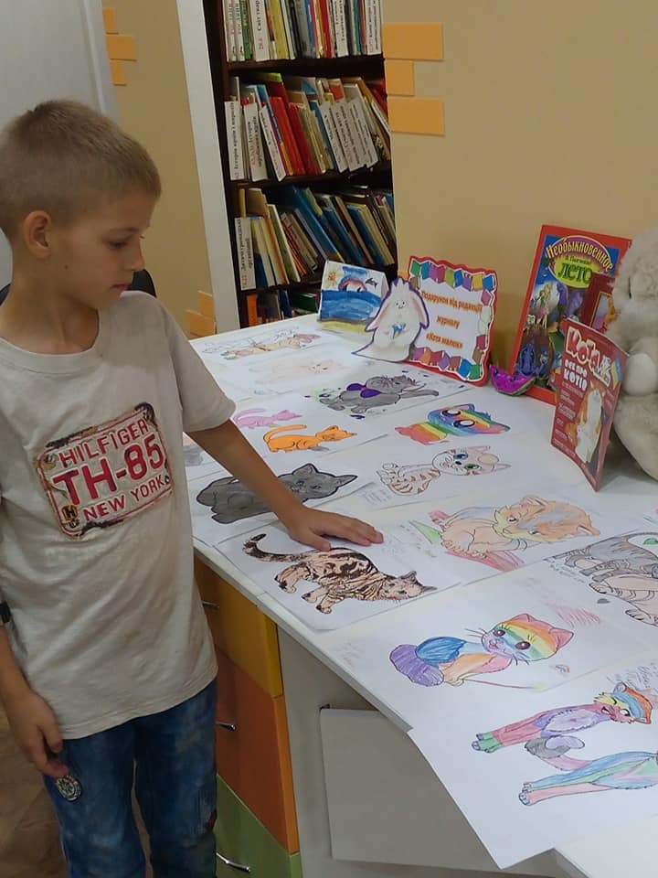 06.08.2018Липнева виставка дитячої творчості у бібліотеці для дітей 8 міста Миколаєва, присвячена журналу "Малюк Котя"!