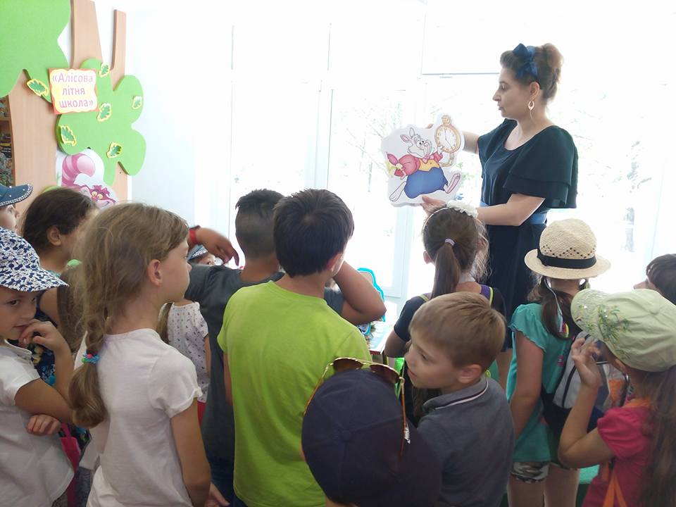 Дітлахів літнього табору МЗОШ48 зустрічала Аліса - героїня казки англійського письменника Льюіса Керролла "Аліса в кр...