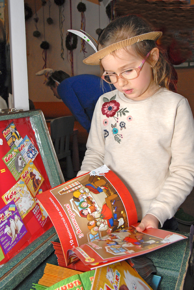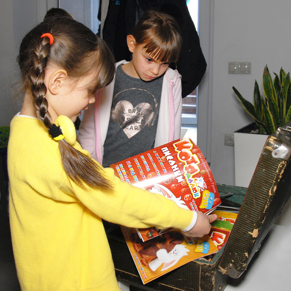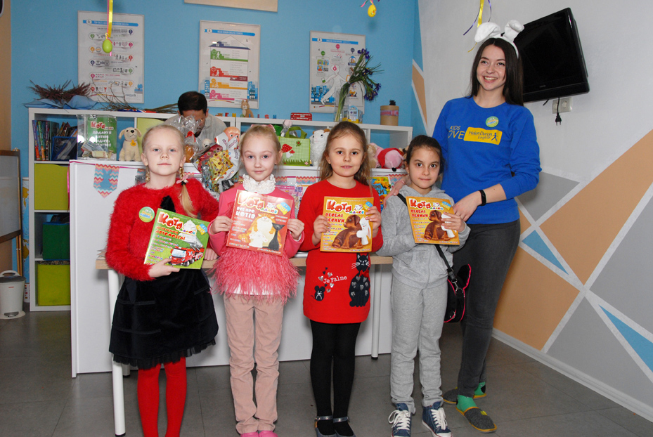 «Малюк Котя» знову завітав до своїх друзів у Бібліотеку для дітей 8 міста Миколаєва (пр.Корабелів,12), в якій, під керівництвом провідного бібліотекаря Лілії Полковниченко, проходять презентації журналу для дошкільнят та учнів 1-х - 4-х класів.