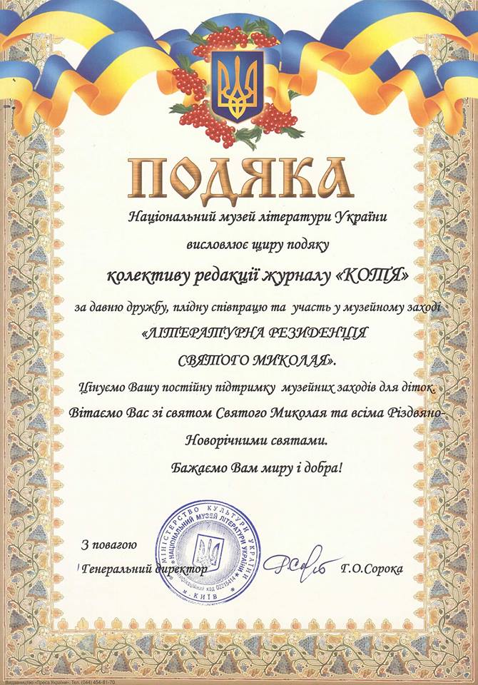 журнал "Малюк Котя" взяв участь у нагородженні найкращих читачів серед дітей України.