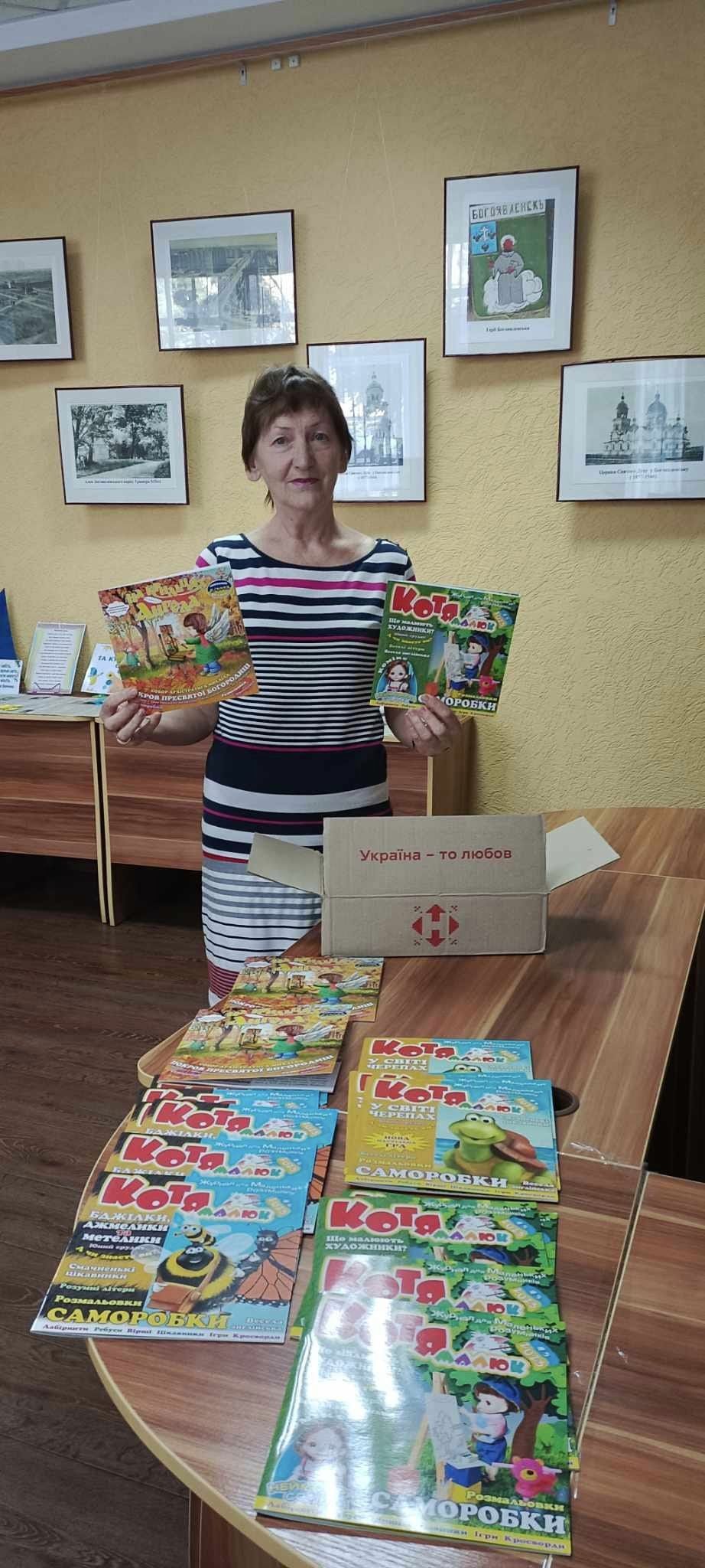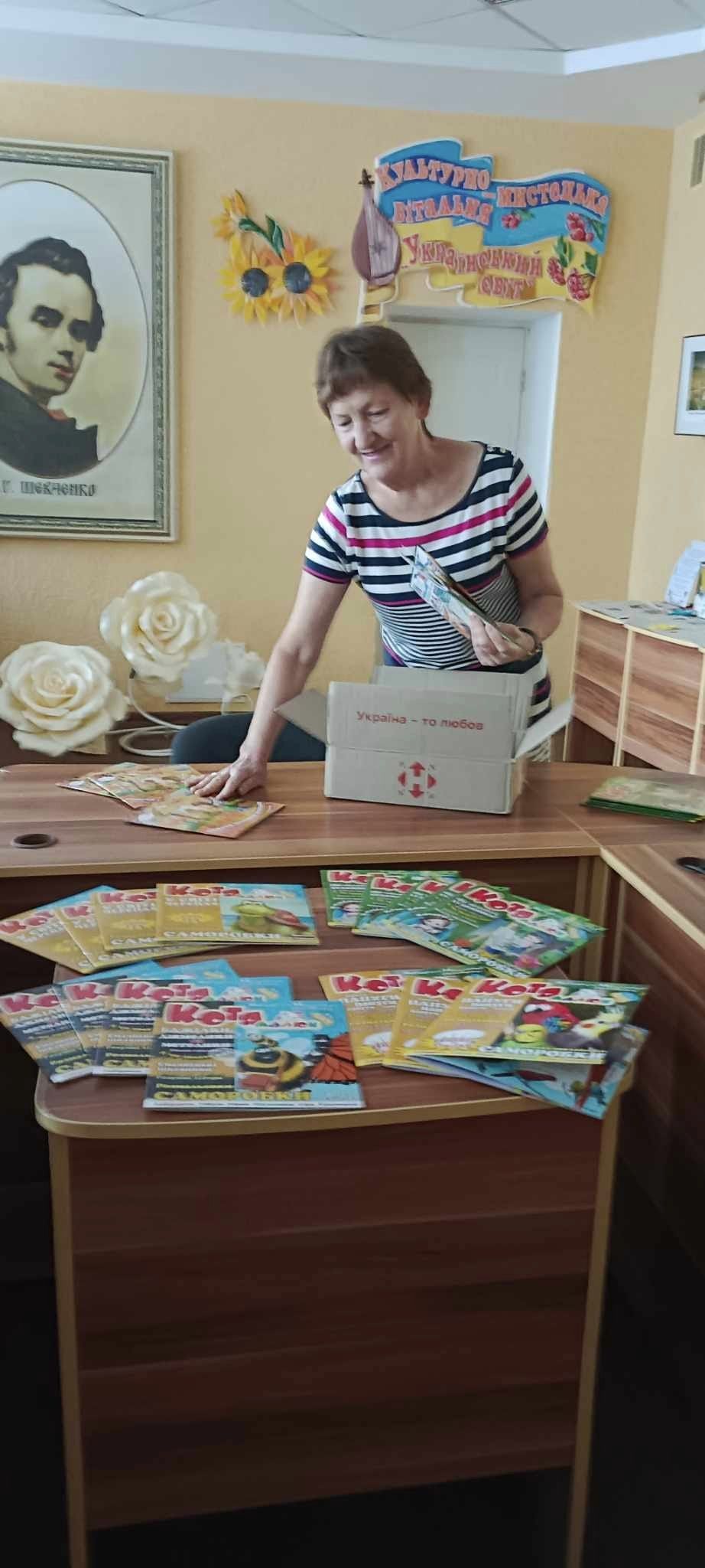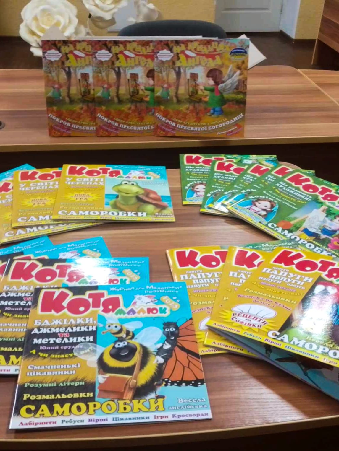 "Сьогодні кур'єрською доставкою Нова пошта було доставлено у бібліотеку 50 нових журналів з міста Києва від партнерів бібліотеки - редакції журналів Котя МАЛЮК КОТЯ журнал для дітей та Християнський журнал для дітей "На крильцях Анге...