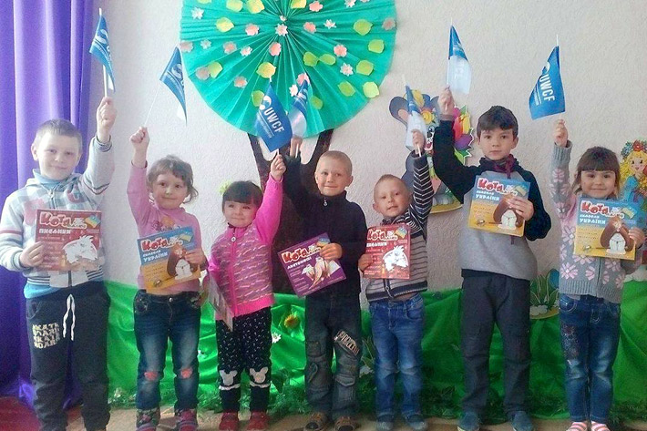 Малюк Котя разом зі співробітниками Благодійного фонду UWCF United World Cultures Foundation / UWCF, які працюють над проектом «Наше здоров'я в наших руках» програми «Крокуємо в країну Здоров'я», відвідав діток зі Сходу України, котрі проживають у пансіонаті «Джерело», що знаходиться у Пущі - Водиці.
