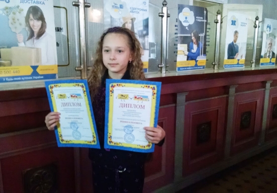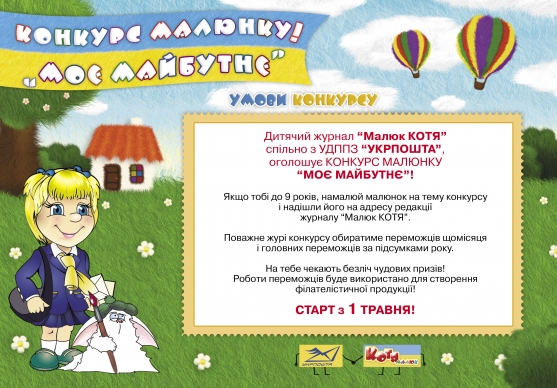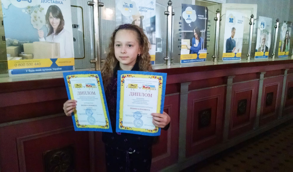 Малюк КОТЯ разом з УКРПОШТОЮ нагородив переможця Всеукраїнського конкурсу дитячого малюнка «Мій рідний дім Україна» Єлизавету Рєпко за роботу «Лелеки прилетіли».