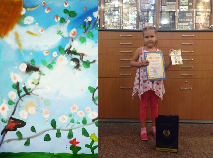 За малюнок «Яблуневій цвіт» 6-річна переможниця конкурсу отримала диплом «Переможця місяця», тематичні набори погашених поштових марок «Юний філателіст»...