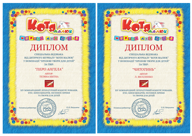 Малюк Котя разом з авторами журналу Ольгою і Анатолієм Лапушеними відвідав церемонію нагородження премією «Коронація слова», яка пройшла вже 14-ий раз поспіль в Україні.